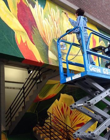 Hale’s eclectic body of work has made an impact beyond this piece, with popular as well. Her drawings, printmaking, and paintings have been transferred to masks that have become popular during the pandemic. One shows a small hissing possum along with the words “Stay Six Feet Back!” while another features Kentucky’s widely beloved governor, Andy Beshear, along with his famous pandemic catchphrase, “You can’t be doing that.” Her murals have places of prominence in Lexington, Harlan, and Hindman, Kentucky.