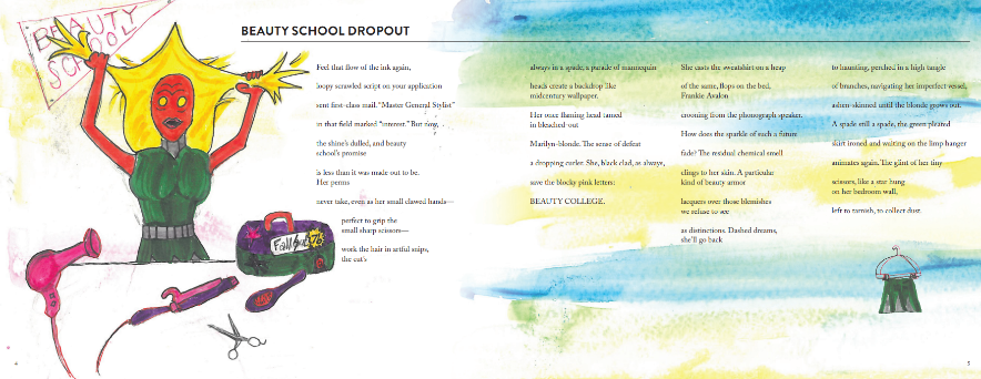 My artistic process with illustrating this book was to hone in on the objects and environment and consider them with contemporary and pop culture, then imagine a scene with those references. I might look up the monster's image in the process, and/or other images for inspiration. Then I'll decide if I want to paint it or purely draw it. My process is pretty raw because I love the tradition of pen to paper. Once I saw the images with the poems, I added some little illustrations and moved around a few things thanks to the designer. It was a truly fun project!