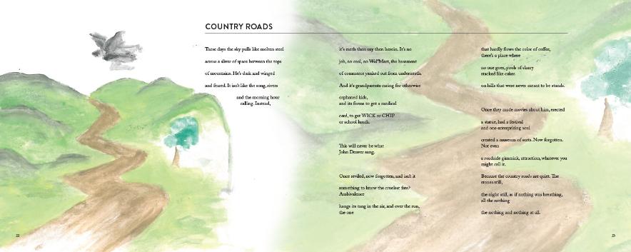 Renée K. Nicholson: What We Do In the Hollows originally began as a way to keep writing while managing a complex convergence of circumstances: a work situation that was becoming less and less sustainable, the COVID pandemic, and the polarizing political situation. I was influenced by my friends at Barrelhouse, who put out a cryptid-themed version of their literary journal. I started the title poem, cribbing the idea from the television show, What We Do in the Shadows, which follows the un-lives of a group of vampires. I started imagining what many of West Virginia’s cryptids might do in our current situations.